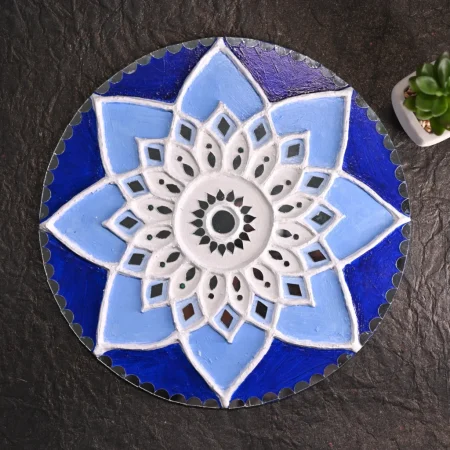 Crafted from MDF board, Fevicryl moulded clay, mirrors, and vibrant acrylic colours, it’s a stunning piece that adds a personal touch to any space. Ideal as a thoughtful gift for friends, family, or loved ones, this 30 cm artwork reminds you of your love and best wishes every time it’s admired. To maintain its beauty, wipe it with a clean, dry cloth and handle it carefully, avoiding harsh scrubbing.