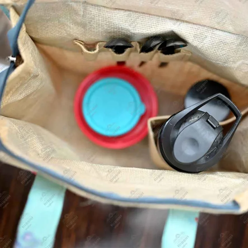 This jute bag can be used as a lunch bag, hand bag, or travel bag.These bags are made of eco-friendly, high-quality, durable, and biodegradable laminated jute material.They feature anti-slide zipper locks for the main closure and jute handles coated with fabric.